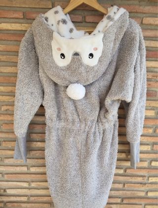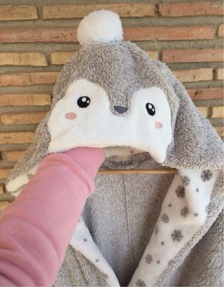 Bata polar con diseño de pingüino, muy suave y cómoda. - Capucha con detalles de pingüino. - Puños y cintura elásticos. - Tacto muy agradable.