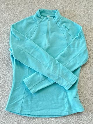 Forro polar de media cremallera mujer en azul celeste/turquesa de la marca Quechua talla XXL. -Tecnologia Stratermic: Material cálido,confortable y transpirable. - Diseño con costuras ranglan marcadas en los hombros. - Cuello alto para mayor protección. Ideal para 🗻,nieve, ski,snow,trekking o senderismo. Usado pero limpio y en muy buen estado. Forro.Forros.Forro polar.Forro polar media cremallera.Forro polar mujer Quechua MH100.Forro polar montaña.Forro polar ski. Forro polar senderismo.Sudadera polar.Sudadera polar media cremallera.Forro polar deportivo. Forro polar trekking mujer.Forro polar azul turquesa.Outdoor.Ski. Nieve.