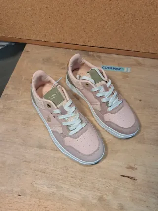 Zapatillas de la marca U.S. Polo Assn. en talla 38. - Diseño en tonos rosas y verde caqui. - Cierre con cordones. - Suela blanca.