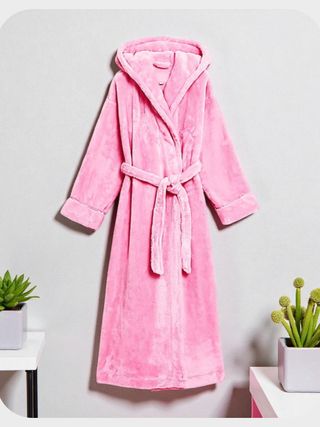 Albornoz polar suave y cómodo con capucha. - Color rosa vibrante. - Diseño con cinturón. - Manga larga.