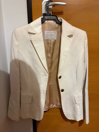 Elegante blazer de North East Polar en color blanco roto. Una prenda clásica y versátil. - Diseño de corte recto. - Cierre de botón. - Bolsillos frontales con solapa. - Forro interior