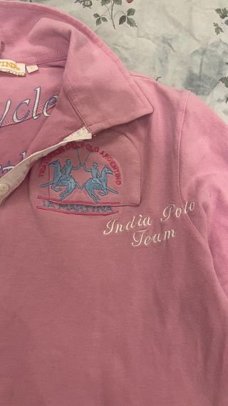 Polo de manga larga para mujer de la marca La Martina. - Diseño con cuello y botones. - Detalle de escudo bordado en el pecho. - Estampado India Polo Team en un lateral.