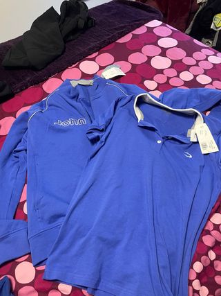 Conjunto de dos prendas de John Smith. - Sudadera azul con cremallera frontal y detalles blancos. - Polo azul con cuello blanco y botones. - Talla como para una 40/42
