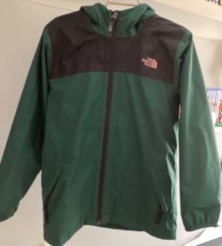 corta vientos the north face niño talla M, se compone de dos piezas la parte exterior verde que es el corta vientos y la parte interior que es un forro polar negro, se puede desmontar y usar las dos piezas por separado, el estado es muy bueno