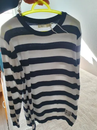 Polo de punto con rayas verticales en azul marino y blanco. Es una prenda nueva, ideal para los más pequeños. HECHALE UN VISTAZO A MI PERFIL TENGO MUCHAS COSAS DE INTERES GENTE SERIA - Diseño a rayas. - Cuello redondo. - Manga corta.