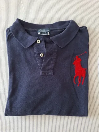 Polo original de manga corta para niño de la marca Polo Ralph Lauren. Presenta un diseño clásico con el logo del jinete bordado en varios colores por toda la prenda. Se vende porque me queda pequeño y no puedo devolverlo. - Talla L de niño (14-16) - Cuello tipo polo. - Cierre de botones en la parte delantera. - Logo bordado multicolor