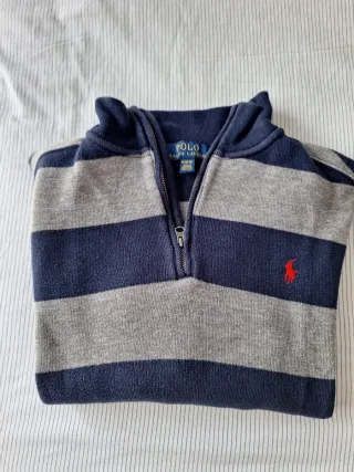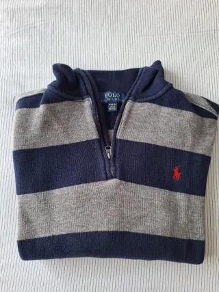 Jersey de Polo Ralph Lauren con diseño de rayas. - Cuello redondo con cremallera. - Logo de caballo bordado en rojo en el pecho.