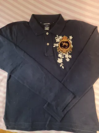 Polo de manga larga con un diseño clásico y elegante. - Cuello tipo polo con botones. - Detalle de escudo bordado con motivos florales y un caballo. - Puños en las mangas. - Talla XL 16 niña, vale S adulto. - Buen estado, muy cuidado.