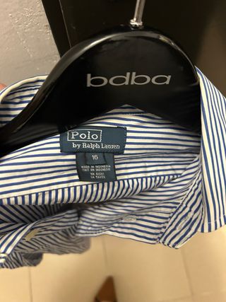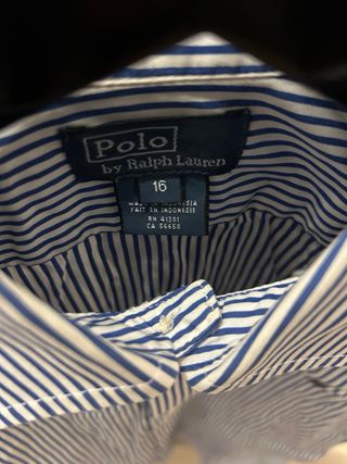 Camisa de manga larga con un diseño de rayas finas en tonos azules y blancos. Presenta el icónico logo del jinete bordado en el pecho. Es una talla 16 de niño de las antiguas por eso pongo q es XS ES Q no le da la opción de poner así en las tallas - Cuello clásico. - Cierre de botones. - Puños abotonados.