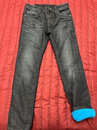 Pantalón de niño con forro polar para mayor calidez. usado una vez - Cintura elástica. - Cierre de botón de enganche y cremallera. - Bolsillos delanteros y traseros. - Forro interior de color azul.