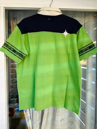Polo de manga corta con detalles en verde. Talla 14/16 de niño o S adulto para persona delgada. - Cuello tipo polo. - Logo de la marca bordado en el pecho. - Número 3 en la manga izquierda.