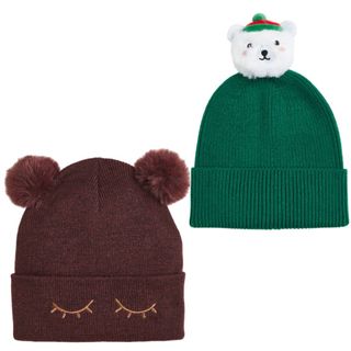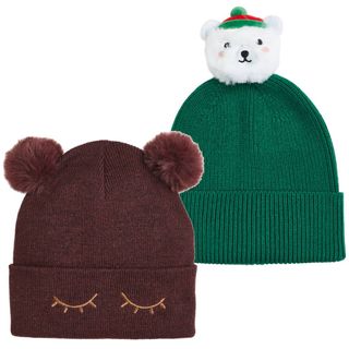 Conjunto de dos gorros de invierno para niños, perfectos para los días fríos. Gorros Invierno Osos Verde, Marrón Niños 3-7 años - Gorro marrón con pompón de oso y detalles bordados. - Gorro verde con adorno de oso polar en la parte superior. Recibelo en españa (48-72 hrs), Italia y portugal (3-4 dias).