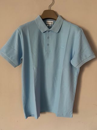 Polo Lacoste Azul Claro Logo Bordado Talla XS