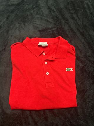 Polo de manga corta Lacoste en color rojo. Presenta icónico cocodrilo bordado en el pecho.