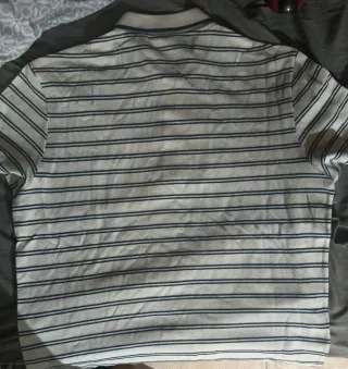 Polo de manga corta con un diseño clásico de rayas horizontales. El logo de la marca está bordado en el pecho. - Cuello tipo polo. - Cierre de dos botones. - Tejido de punto. - Diseño a rayas. Pequeña mancha visible en la segunda foto.