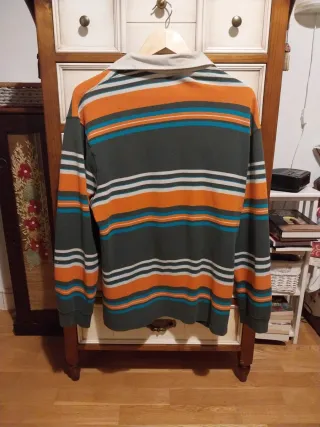 Polo de manga larga con un diseño de rayas llamativo. - Cuello tipo polo. - Logo de la marca bordado en el pecho. - Puños elásticos.