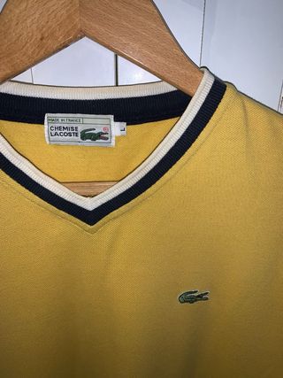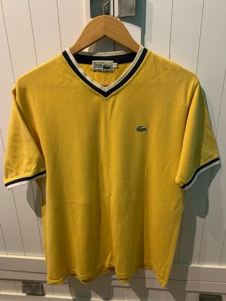 Camiseta Retro Lacoste Cuello Pico Amarilla