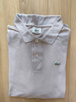 Polo original Lacoste en un elegante color beige (arena). Confeccionado en piqué de algodón de alta calidad, ofrece un diseño clásico con el icónico cocodrilo bordado en el pecho. Se encuentra en muy buen estado, muy cuidado y con el tejido impecable. Talla: L Medidas precisas: • Pecho (sisa a sisa): 55 cm • Largo total: 70 cm • Hombros: 50 cm • Largo de manga: 60 cm • Cintura / Bajo: 60 cm • Cuello: 20 cm Prenda versátil, cómoda y de gran durabilidad. Ideal para un estilo casual elegante.