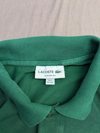 Polo original Lacoste en un sofisticado color verde. Confeccionado en piqué de algodón de alta calidad, ofrece un diseño atemporal con el icónico cocodrilo bordado en el pecho. Se encuentra en muy buen estado, cuidado y sin signos evidentes de desgaste. Medidas precisas: • Pecho (sisa a sisa): 45 cm • Largo total: 60 cm • Hombros: 40 cm • Largo de manga: 55 cm • Cintura / Bajo: 50 cm • Cuello: 20 cm Talla: S/M Una prenda versátil, cómoda y de gran durabilidad. Ideal para un estilo casual refinado.