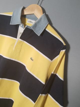 Polo manga larga original Lacoste, modelo rugby avispa. En buen estado. Talla S de adulto. Las medidas son de axila a axila 52 cms, y desde la parte alta del hombro hasta abajo 64.5 cms.