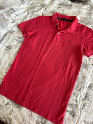 Polo de manga corta, color rojo. Con usos en buen estado - Purificación García - Talla:S - Cuello y detalles en rojo - Longitud: Largo 69 cm ancho hombros 41 cm