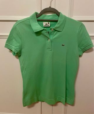 Polo clásico de la marca Lacoste en color verde. Aunque pone talla 40 talla pequeño como una S/M - Diseño de manga corta. - Cuello tipo polo con botones. - Pequeño logo del cocodrilo bordado.