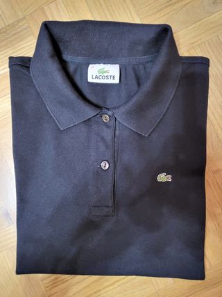 Polo Lacoste de algodón talla 38 de mujer. Entallado. Manga 3/4. Se vende porque no se utiliza. Perfecto estado. Viene con botones frontales hasta el escote. Medidas aproximadas de axila a axila 49 cm y de largo 66 cm. Precio original 120 €.