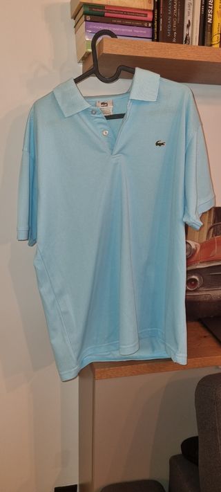Camisa polo de Lacoste, en azul marino y talla S slim fit. Es una prenda vintage, en muy buen estado. - Corte clásico y elegante. - Cierre de botones. - Detalle del cocodrilo Lacoste. - Medidas: 41cm ancho x 58cm largo