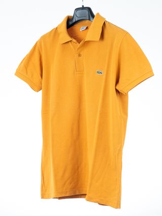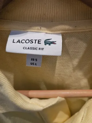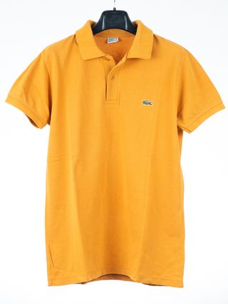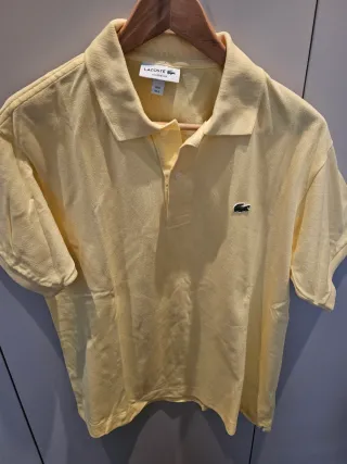 Polo de manga corta de la marca Lacoste en color amarillo. Talla M/L - Cuello clásico. - Cierre de botones. - Logo del cocodrilo bordado en el pecho.