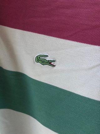 Polo de manga corta Lacoste con un diseño de rayas horizontales en dos tonos de verde. - Cuello tipo polo. - Cierre de botones. - Logo del cocodrilo bordado. Eñ perfecta condiciones
