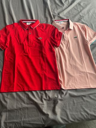 Conjunto de dos polos de la marca Lacoste. - Un polo de color rojo. - Un polo de color rosa. - Talla M (38-40 / 48-50). -cada uno 20 los dos 30