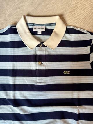 Polo de manga corta con diseño a rayas. 100% algodón. Nuevo, usado 2 veces. - Cuello tipo polo. - Logo del cocodrilo bordado. - Mangas y cuerpo con detalles de rayas.