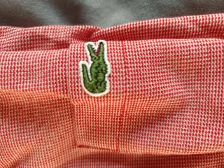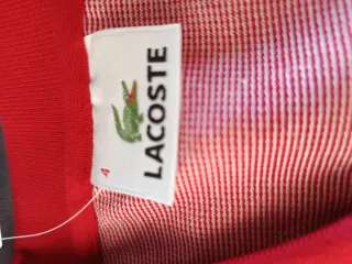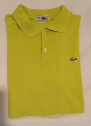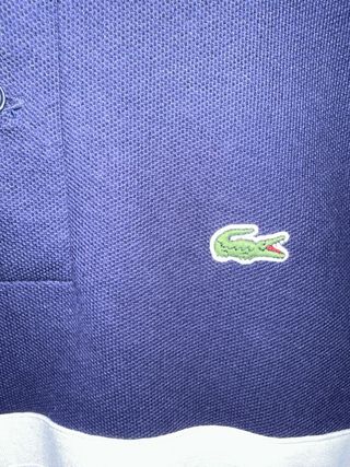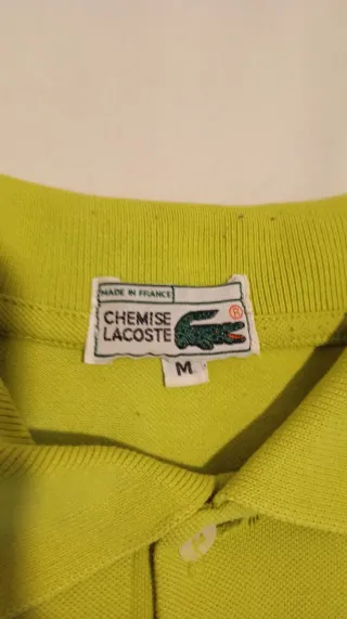Polo Lacoste made un France talla M, tiene alguna mancha de grasa, de ahí el precio, quizás con un buen tratado puedan salir, puedo mandar más fotos o vídeos, solo ha tenido un dueño, no tiene roturas ni descosidos.