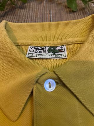 Polo de manga corta de la marca Lacoste en color amarillo. Hecho en España. - Cuello camisero. - Cierre de botones. - Logo del cocodrilo bordado. Vintage. Original. Polo. Lacoste.