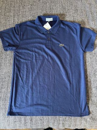 Polo clásico de la marca Lacoste en color azul marino. Tejido de piqué de alta calidad, muy cómodo y transpirable. Es una talla 9, equivalente a una talla grande (4XL o 5XL aproximadamente), ideal para quien busca un corte amplio o oversize. Estado del artículo: El polo está en buen estado general de color y tejido, pero presenta dos detalles de uso que se muestran claramente en las fotos: En la espalda: Un pequeño agujerito casi imperceptible cuando se lleva puesto (ver foto detallada).En la manga: Un pequeño corte/desgaste en el borde del puño (ver foto). Aparte de estos detalles, la prenda sigue teniendo mucha vida por delante
