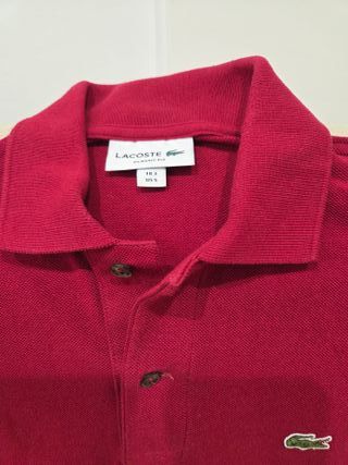 Polo Lacoste color vino tinto, prácticamente nuevo, con 2 usos. Está en perfecto estado.