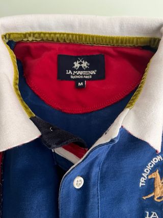 Polo de manga larga de la marca La Martina. - Color marrón. - Logo de Porsche y Polo Team en el pecho. - Cuello tipo polo con botones. Tiene una pequeña mancha, ver foto 5 de ahí su bajo precio