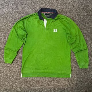 Polo Vintage de manga larga de la marca Tommy Hilfiger. - Color verde vibrante. - Cuello clásico con botones. - Detalle de la marca.