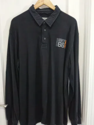 Polo de manga larga con un diseño gráfico de la HWY 66 en el pecho. - Cuello tipo polo con botones. - Estampado gráfico en el pecho. - Puños elásticos en las mangas.