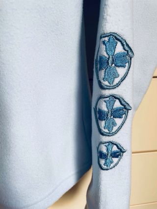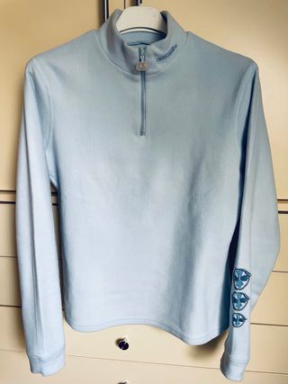 Polar para chica de la marca Banana Moon en color azul claro.Es una prenda cómoda y versátil y de un tejido muy muy suave. Aunque pone M es más bien una S. Mide: Ancho de hombro: 38cm Ancho de sisa: 47cm Largo espalda: 55cm Largo de manga: 58cm - Cierre de cremallera en el cuello. - Detalle de escudos bordados en la manga y bordada la marca en el cuello.