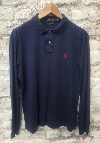 Polo de manga larga de la marca Polo Ralph Lauren. En perfecto estado Talla M - Color azul marino. - Logo del jinete bordado en rojo en el pecho. - Cuello clásico. - Cierre de dos botones.
