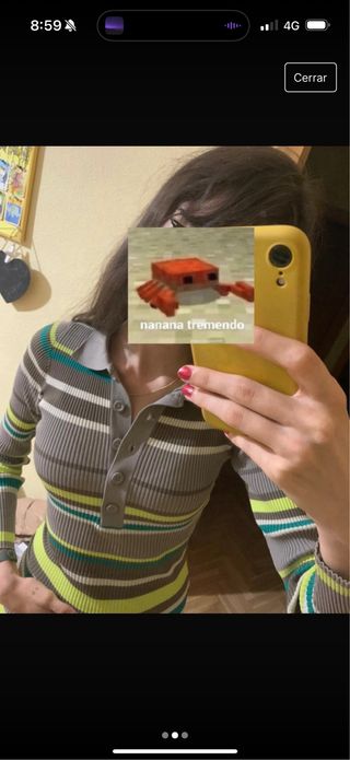 Polo de manga larga de Zara con un diseño de rayas llamativo. - Diseño de rayas horizontales. - Cuello tipo polo. - Manga larga.