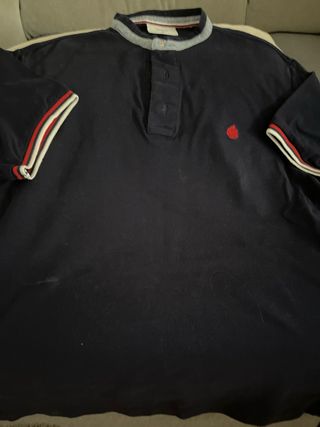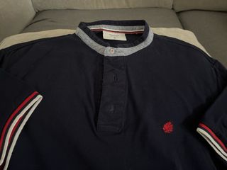 Polo de manga larga en color azul marino. - Cuello mao con detalle de botones. - Puños con rayas rojas y blancas. - Logo bordado en rojo en el pecho.
