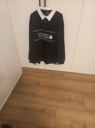 Polo de manga larga con cuello blanco. - Diseño con detalles de rayas blancas. - Logo de Guinness en el pecho.