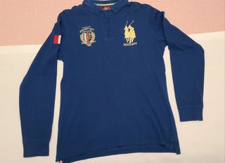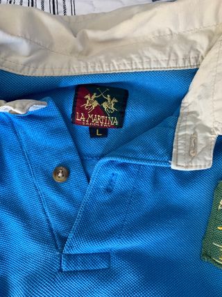 Polo de La Martina para hombre con manga larga. Color azul claro. Tejido fresco “entretiempo “. Talla L. Usado en muy buen estado; muy chulo.