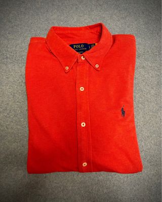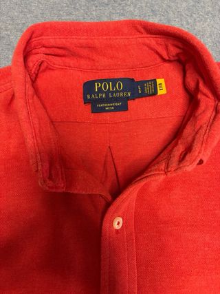 Bonito polo en tono rojo de manga larga abotonado. Talla G Ralph Lauren. Con QR en etiqueta que se abre a página web de la marca. En perfecto estado de conservación por escaso uso. Medidas en fotos.