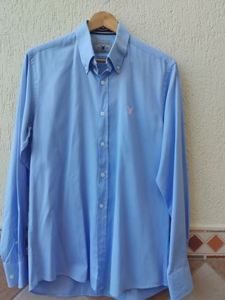 CAMISA de hombre,talla L. En azul. Completamente nueva sin utilizar, solamente se quitó la etiqueta. De algodón 100%. Medida de pecho debajo de las axilas,de una axila a otras 54 CMS ,en total el contorno pecho 108cms. De largo de =75cms y de costura de hombro a hombros =47cms . De largo manga desde costura del hombro=67cms. Largo mangas desde cuello=83cms.