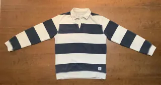 Polo de la marca Alvaro Moreno. Es de manga larga, con un diseño de rayas azules y blancas. No hago envíos. - Corte clásico. - Tejido suave.