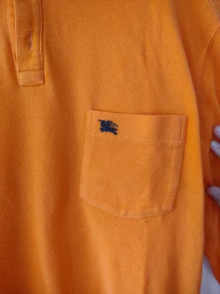 Polo de manga larga con un vibrante color naranja. Presenta un diseño clásico con cuello y tapeta de botones. - Logo de Burberry bordado en el bolsillo. - Puños elásticos en las mangas.
