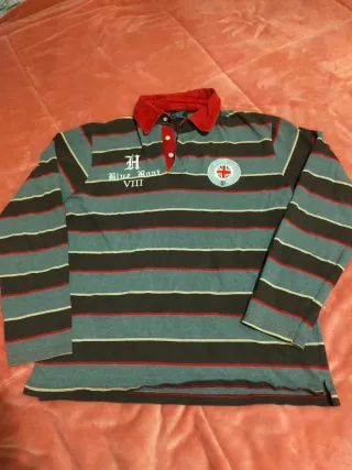 Polo de manga larga con cuello y botones. Presenta un diseño de rayas. Usado , pero en buen estado